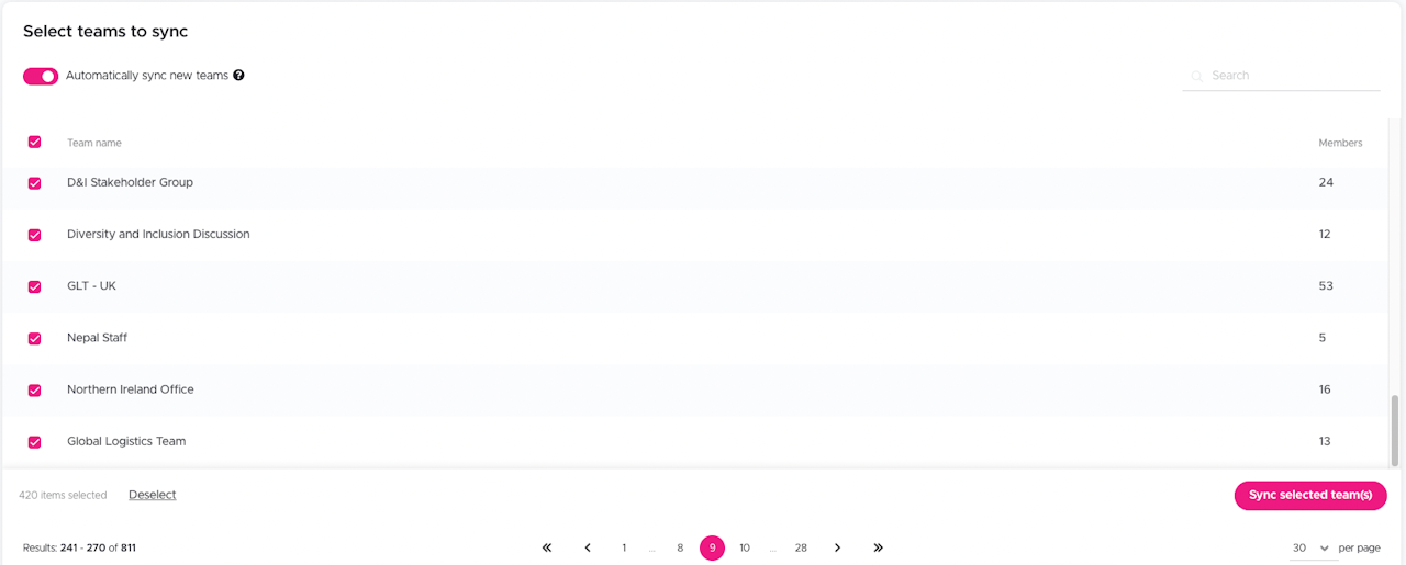 You can also choose to disable the syncing of newly added groups by toggling off "Automatically sync new teams" at the top of this page.