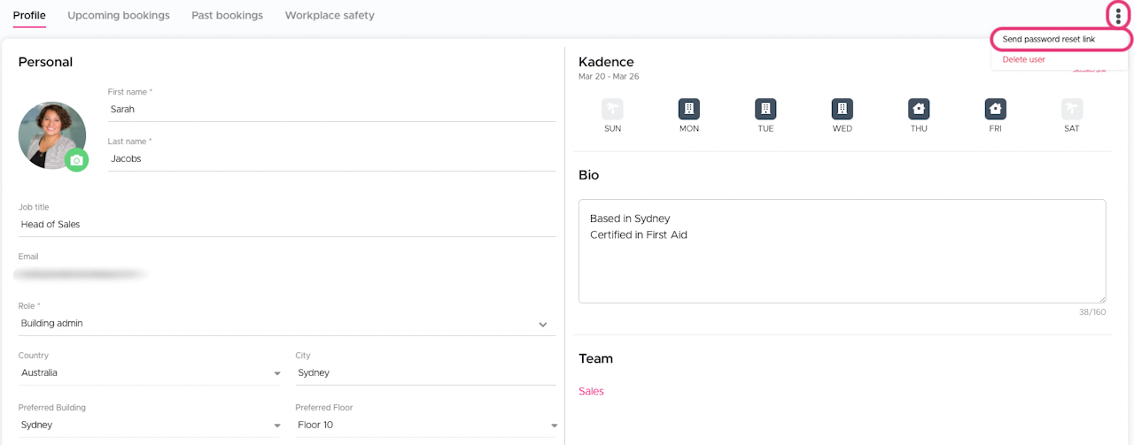 If you see "Resend invitation" instead of "Send password reset link" it means that this user has yet to set up an account in Kadence. Clicking "Resend invitation" will send the user a "Welcome to Kadence" email asking them to set a password.