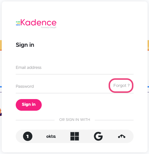 Navigate to https://login.onkadence.co/ in your browser, or open the mobile app and tap on "Sign in"