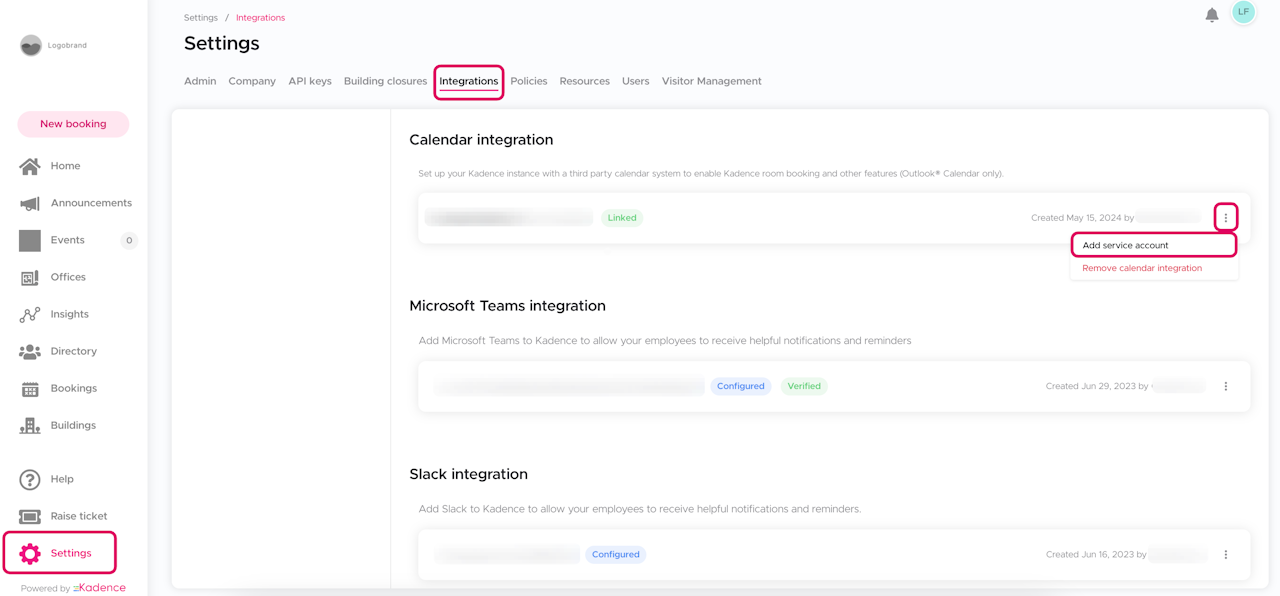 Yes, we now allow admins to set up a service account in place of using their admin email to enable Outlook/Google calendar integration.